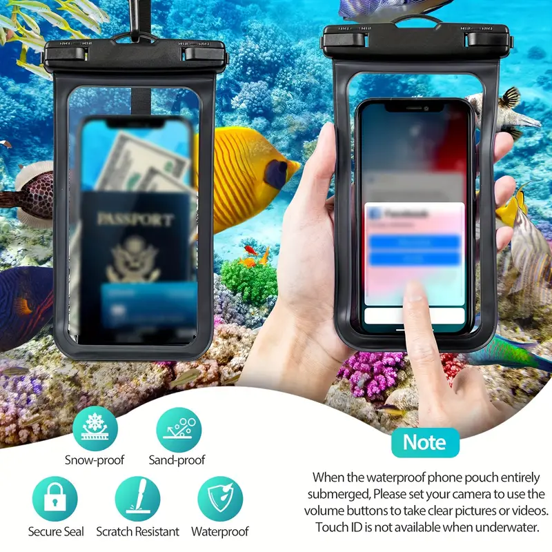 2pcs Waterproof Phone Pouch, Waterproof Phone Case For IPhone 15 14 13 12 Pro Max, Cellphone Dry Bag Beach Cruise Ship Essentials